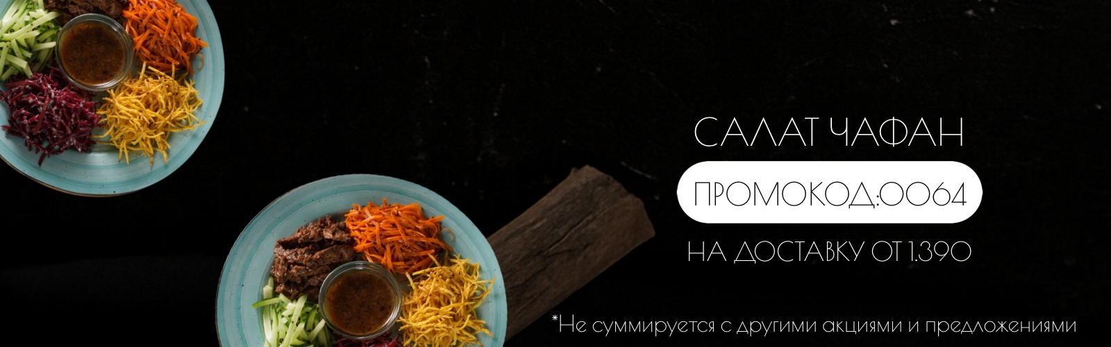 Фирменный салат из говядины, болгарского перца, маринованного огурца, свежего огурца и фунчезы, заправленная особым соусом